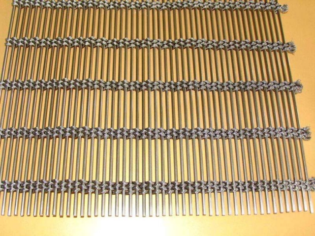 不銹鋼合股網(wǎng)帶用途:用于塑料發(fā)泡爐,食品輸送生產(chǎn)線、強(qiáng)度過濾和防護(hù)業(yè)。(1)不銹鋼裝飾網(wǎng)、銅網(wǎng)裝飾網(wǎng)、徑向采用不銹鋼絲繩,緯向采用不銹鋼棒。