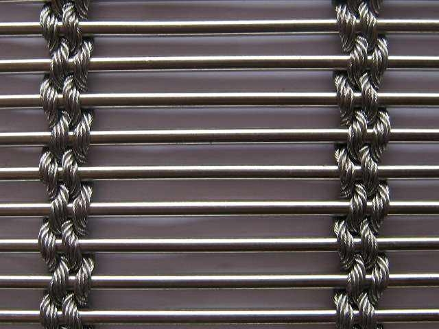 金屬編織裝飾網(wǎng)是由不銹鋼絲,銅絲,鋁絲等金屬材料編織而成,可以用圓絲,扁絲編織,編制方式可以任意排列,編織完成后表面可以拋光處理,達到鏡面效果,也可以做成黃色等各種顏色,美觀大方,適用于建筑物的立面、隔斷、吊頂、遮陽、陽臺和走廊、立柱表面裝飾、卷簾、樓梯通道以及飯店、辦公室、展廳、商店等的高檔內(nèi)裝修。它的特點是不受空間大小的限制,安裝簡便,配以燈光會產(chǎn)生非常玄妙的效果,現(xiàn)代感極強。